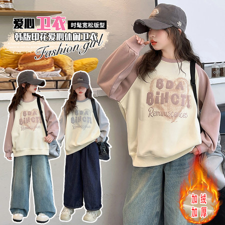 叮*镇收藏“爱心插肩袖加绒卫衣1”