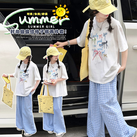 1*1收藏“2631款蝴蝶结格子裤套装”